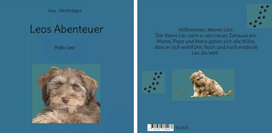 „Leos Abenteuer“ ist mein erstes Kinderbuch. Es erzählt die liebevolle Geschichte des kleinen Welpen Leo, der in seine neue Familie kommt und die Welt auf seine ganz eigene, neugierige Art entdeckt – voller kleiner und großer Abenteuer.